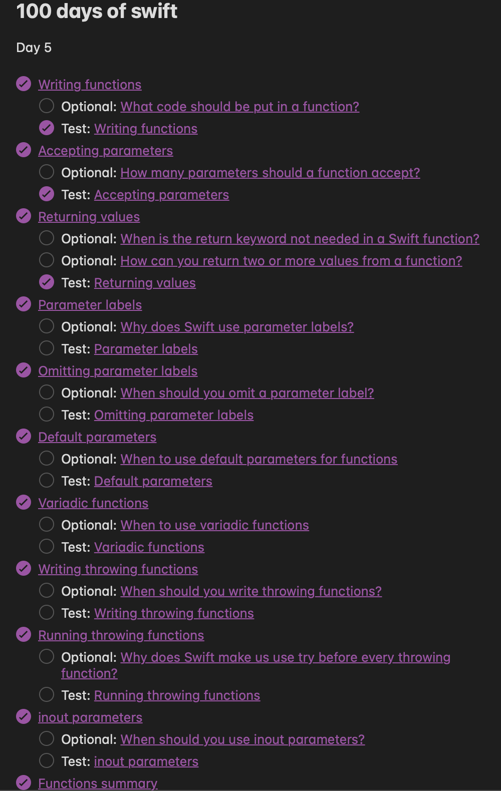 지금 3일차이고, 100 Days of Swift는 Day 5를 듣고있습니다.